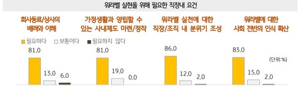 워킹맘의 워라벨을 위해 직장 및 조직내 분위기 조성이 가장 중요