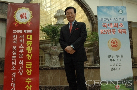 KS표시 인증제도는 지식경제부 산하 기술표준원이 엄격한 기준에 따라 규정한 한국산업규격(KS) 수준 이상의 제품이나 서비스에 대해 국가가 그 품질을 보증해 표시하는 제도로, 이 인증을 획득함으로써 명실공히 우수한 서비스 품질 수준을 정부기관으로부터 공식적으로 인정받게 된 셈이다. 이에 따라 국내 10대 골프장인 제주 CC의 위상은 하늘을 찌를 태세다. 이모든 결과는 30년 롯데맨으로 서비스 정신이 몸에 베어있는 이승훈 대표이사의 고객감동경영의 덕택이다.