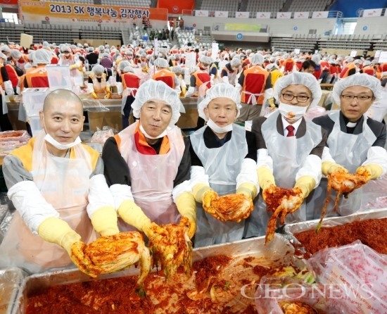 SK그룹은 올해 첫 행사로 서울 송파구 SK올림픽핸드볼경기장에서 김창근 SK수펙스추구협의회 의장을 비롯한 SK 경영진과 SK 계열사 노조위원장, SK 협력업체 CEO, 먹거리나누기운동협의회 등 NGO 관계자 등 1000여명이 행복김치 4만5000여 포기를 담그는 자원봉사를 펼쳤다.