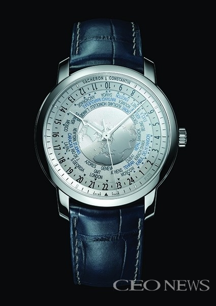 올해 신제품으로 출시된 바쉐론 콘스탄틴의 트래디셔널 월드 타임 엑설런스 플래타인 컬렉션 모델은 자동 기계식 칼리버 2460 WT를 장착해 전 세계 37개국 타임존을 알려준다.
