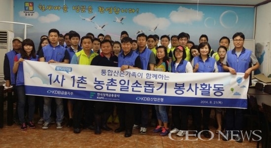 통합산업은행은 올해 1월 1일부터 출범하는 통합산은의 대상인 산업은행과 정책금융공사 및 산은금융지주 직원 등 총 40명이 “1사 1촌 자매결연”을 맺고 있는 강원도 철원군 양지리 마을을 방문해, 마을의 특산물인 ‘홍고추’와 ‘피망따기’ 작업에 참여하는 등 부족한 농촌일손을 도왔다.