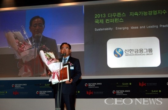 이러한 점들을 인정받아 신한금융그룹은2013년 '더 뱅커'지가 선정한 글로벌 금융브랜드 순위에서 51위를 기록해 국내 금융그룹 1위를 지키고 있으며, 사상 처음으로 50위권 내 진입을 앞두고 있다. 또한 DJSI(다우존스 지속가능경영지수) 국내 은행 부분 5년 연속 1위를 차지하고 있을 뿐 아니라, 올해에는 국내 금융기업 최초로 월드지수에 편입되는 영광을 안게 되었다.