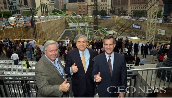 대한항공은 LA시 랜드마크가 될 윌셔그랜드호텔 프로젝트를 본격화하기 위해 지난 2월 15일 윌셔그랜드호텔 건물 구조물 공사에 본격 착수하는 콘크리트 타설 기념행사를 개최했다.