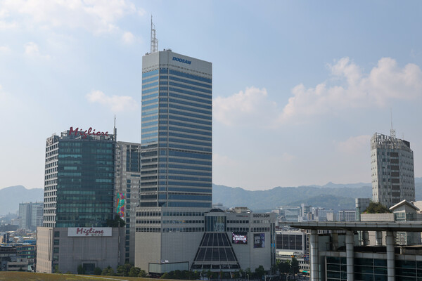 지하 7층~지상 27층 규모의 신사옥은 국내 최대 규모인 1,500톤 스카이 브릿지에 리프트업 방식을 적용한 랜드마크 건축물로 건립됐다. 분당 두산타워에는 두산, 두산에너빌리티, 두산밥캣, 두산디지털이노베이션, 두산로보틱스, 두산큐벡스 등이 입주해 계열사간 시너지 효과가 기대된다.