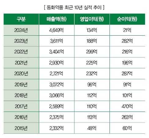 ‘최초’ 타이틀을 많이 가진 동화약품이지만 현재의 기업 사정은 그리 화려한 편은 아니다. 지난해 매출은 4,649억원이고 영업이익은 134억원이다. 10년 전과 비교하면 매출이 2배 이상 증가하며 역대 최고를 기록했지만, 가장 오래된 기업이자, 현존하는 기업 중 주식시장에 가장 먼저 상장한 기업치고는 아쉬운 성적표다. 덩치만으로 기업의 가치를 평가할 수 없지만, 아쉬움은 남는다. 다만, 지금까지 83억 병 넘게 팔린 활명수의 판매 데이터가 현재도 실시간으로 집계되고 있다는 점은 고무적이지 않을 수 없다.