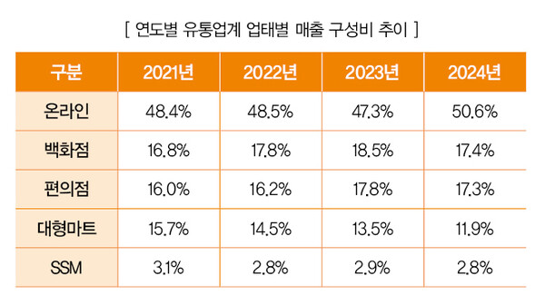 오프라인 유통 빅3 부문(백화점, 편의점, 대형마트) 중 1위는 늘 백화점이었는데 이제 편의점이 매출에서 턱밑까지 쫓아왔고, 최근 수년간의 추세로 볼 때 올해가 지나면 백화점을 앞서 역전할 가능성이 높다.