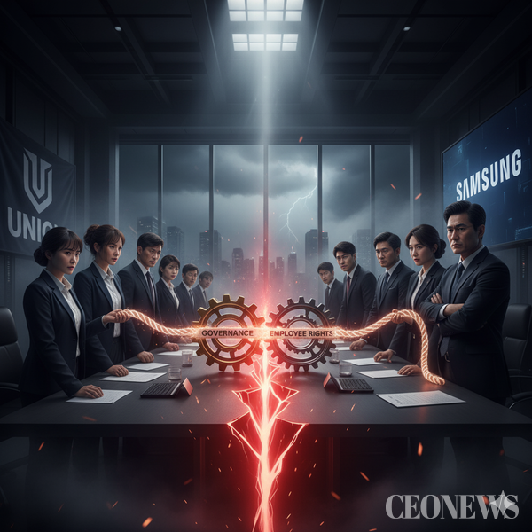 [CEONEWS=이재훈 대표기자] '삼성', 그리고 '노조'. 이 두 단어의 조합은 지난 반세기 동안 한국 재계에서 가장 낯선, 어쩌면 금기시된 조합이었다. 1969년 창립 이래 55년간 철옹성처럼 지켜온 삼성의 '무노조 경영' 원칙은, 단순히 하나의 경영 방침을 넘어 '관리의 삼성'이라는 거대한 시스템을 지탱하는 핵심 기둥이었다. 그러나 이제 그 기둥에 거대한 균열이 가기 시작했다. 삼성전자 창사 이래 최초로, 그것도 최대 노조인 '전국삼성전자노동조합'(이하 전삼노)이 합법적인 쟁의권(파업권)을 확보하며 전면적인 '실력 행사'를 예고하고 나섰다. 2024년 임단협 결렬이라는 표면적 이유 뒤에는, 삼성의 리더십과 거버넌스를 근본부터 흔드는 거대한 지각 변동이 숨어있다. 이는 더 이상 인사(HR) 부서의 실무적 대응 차원이 아니다. 이재용 회장이 선포한 '뉴 삼성'의 리더십이 마주한 첫 번째이자 가장 본질적인 '거버넌스 리스크'다. 이 '초기업노조'의 등장이 삼성의 경영 패러다임에 어떤 의미를 가지며, 향후 어떤 파장을 몰고 올 것인지, CEONEWS의 시각으로 심층 분석한다.