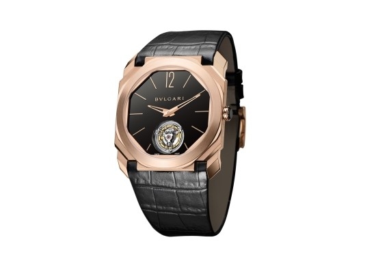 52시간의 파워 리저브 기능을 갖춘 '옥토 피니시모 뚜르비용(Octo Finissimo Tourbillon)'은 세 가지 버전으로 출시되며 모두 직경 40mm 케이스를 장착하고 있다. 극도의 우아함이 전해지는 핑크 골드 버전에는 블랙 앨리게이터 가죽 스트랩이 사용됐으며, 좀 더 모던한 감각의 플래티넘 버전에서는 블랙 래커 다이얼이 사용됐다. 플래티넘 크라운에는 블랙 세라믹 인서트를 사용하였으며, 베젤에는 60개의 바게트 컷 다이아몬드가 세팅되어 있다.