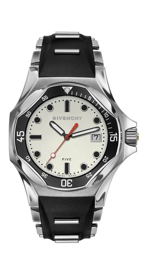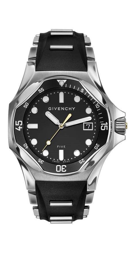 세련되고 도시적이며 활동적인 비즈니스맨을 위한 패션아이템으로 ‘지방시 파이브 샤크’가 주목받고 있다. 모던하면서도 스포티한 느낌을 주는 외형디자인에 우레탄 소재와 스틸을 혼합한 스트랩을 사용해 일상생활은 물론 야외활동에도 안성맞춤이다.