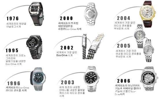 2016 바젤월드를 통해 선보인 시티즌 (CITIZEN) 에코 드라이브 원 (Eco-Drive One) 플래그십 (Flagship) 모델은, 빛으로 구동되는 아날로그 쿼츠 시계 중 세계에서 가장 얇은 두께 (2.98mm 케이스 / 1.00mm 무브먼트) 를 자랑한다.