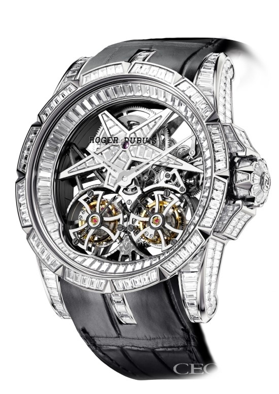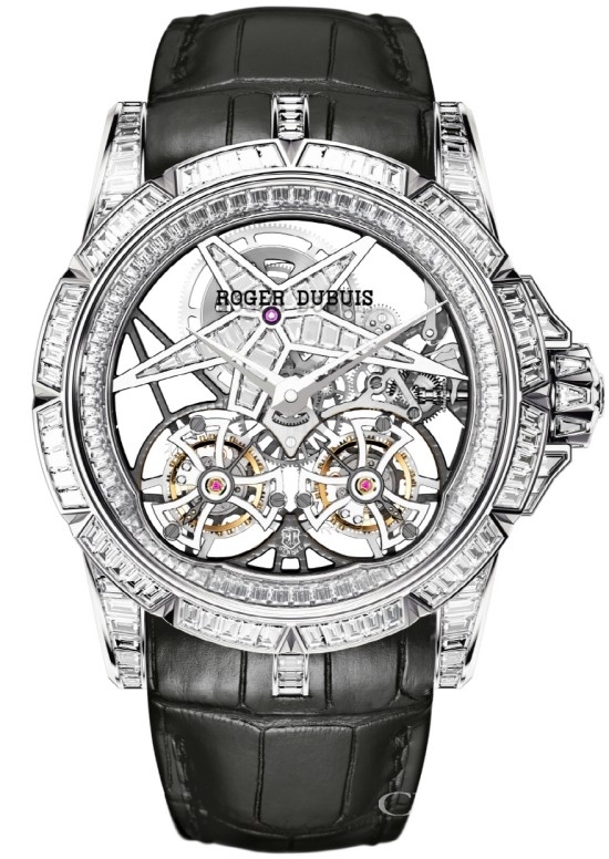 또한 스켈레톤 다이얼을 장착해 대담하고 구조적이면서도 예술적인 느낌을 살렸다. 로저드뷔의 모든 스켈레톤 제품에는 브랜드의 상징적인 별 모양의 스켈레톤 무브먼트가 적용되어 천체를 연상케 하는 것이 특징이다.