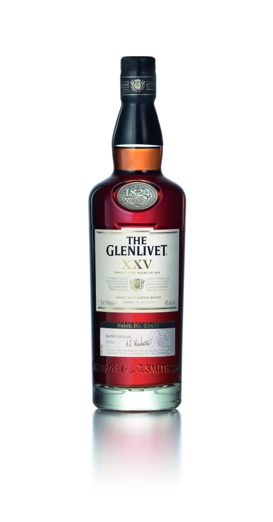 잘 익은 호박과 같은 황금색을 지니고 있는 더 글렌리벳 25년은 셰리 와인을 담았던 첫 번째 오크통에서 숙성된 제품으로 셰리의 영향을 짐작하게 하는 감미로운 과일향과 톡 쏘는 스파이시한 향이 특징이며, 캬라멜과 같은 달콤함 뒤에 느껴지는 오렌지 껍질의 새콤달콤함과 다크 쵸콜렛의 건조함이 조화를 이룬다. 특히 더 글렌리벳 25년은 각각의 병과 케이스에는 일련번호가 새겨져 있고, 4명 마스터들의 승인을 뜻하는 서명이 담겨 있어 그 특별함을 더한다.