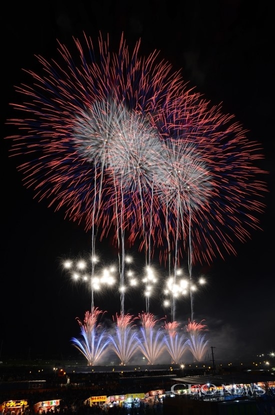 1910년부터 시작된 일본 유수의 불꽃 축제. 일류 불꽃 장인들이 만드는 독창적인 불꽃으로 일본 제일의 자리를 겨룬다. 8월 하순. 약 18,000발.